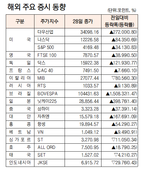 [데이터로 보는 증시]해외 주요 증시 동향(4월 28일)