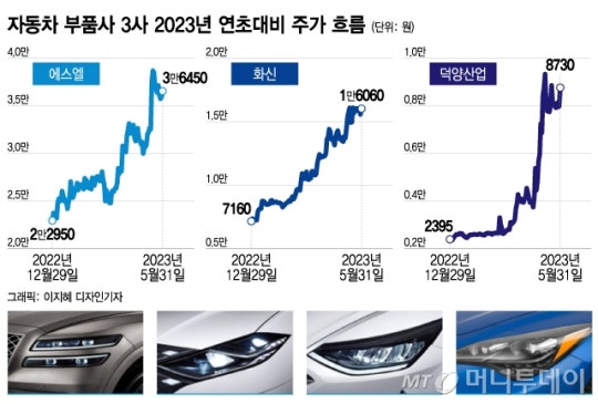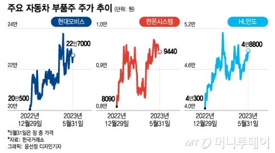 임은영 연구원은 "현대모비스와 에스엘은 북미와 인도 시장에 이미 진출했고 현대차그룹의 판매 증가에 따라 실적이 증가할 수 있다"며 "화신과 성우하이텍도 눈여겨봐야 한다"고 했다.