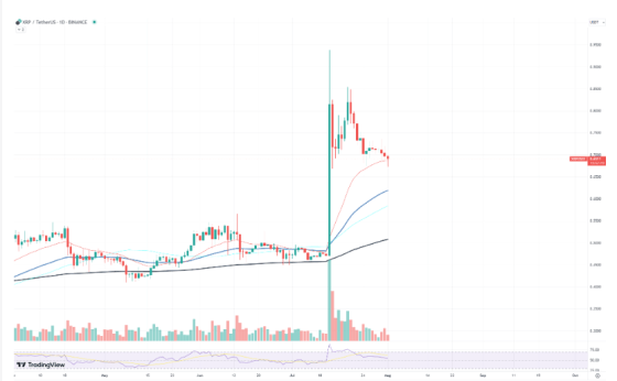 그러나 반대로 21일 EMA 지지선이 무너지면 XRP는 50일 EMA를 향해 가파르게 후퇴할 가능성이 있는 것으로 지적된다. 50일 EMA는 현재 대략 0.6 달러 부근에 자리잡고 있다.