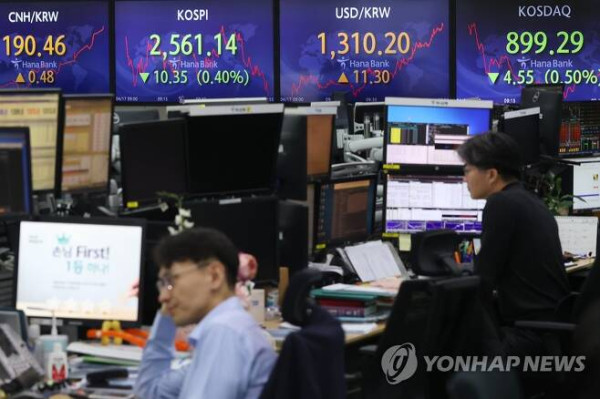 (서울=연합뉴스) 강민지 기자 = 17일 오전 서울 명동 하나은행 본점에서 직원들이 증시 및 환율을 모니터하고 있다. 원/달러 환율은 전 거래일 종가보다 6.1원 오른 1,305.0원에 개장한 뒤 1,300원대에서 오르내리고 있다. 2023.4.17