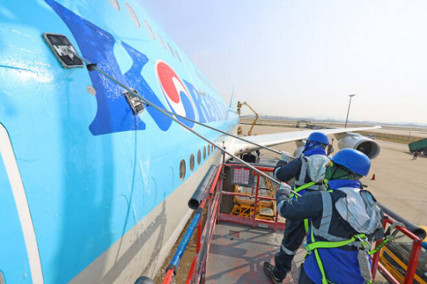 이날 묵은 때를 벗고 새 단장을 한 항공기는 장거리 노선에 투입되는 보잉747-8i로 동체, 날개뿐 아니라 엔진 내부 구석구석까지 먼지와 이물질을 말끔히 제거했다.
