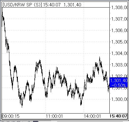 이날 환율은 1307.5원에 개장한 이후 9시 46분께 1299.3원까지 떨어지며 1300원을 하회했으나 그 뒤로 1300원 초중반대에서 좁은 움직임을 보였다.
