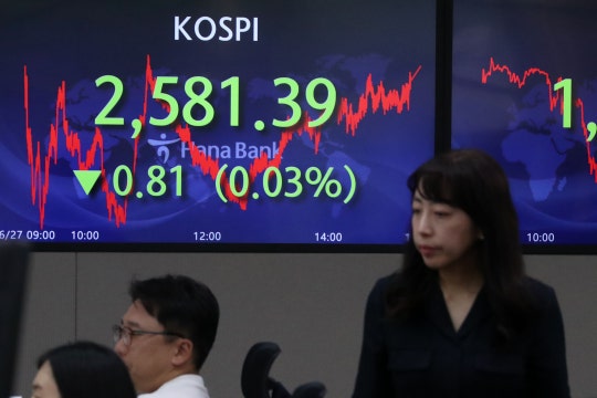 27일 코스피 지수는 외국인의 순매도에 소폭 하락 마감했다. 장 초반 2570선에서 등락했던 코스피 지수는 오후 들어 일부 회복하며 2580선에서 거래를 마감했다.
