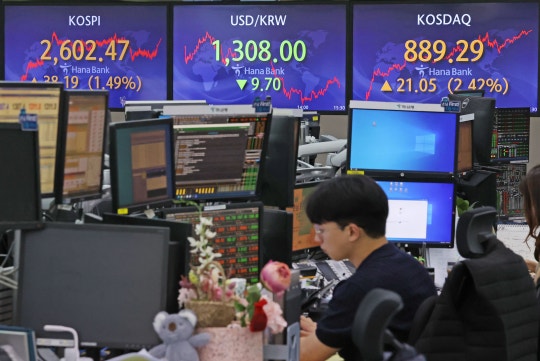 이날 코스피지수는 전일 대비 38.19포인트(1.49%) 오른 2602.47에 장을 마쳤다. 기관이 홀로 7694억원을 사들이면서 지수 상승을 이끌었다. 반면 개인, 외국인은 각각 7485억원, 238억원을 팔아치웠다.