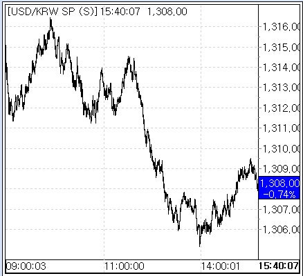 3일 서울외국환중개에 따르면 원·달러 환율은 전 거래일 종가(1317.7원)보다 9.7원 하락한 1308.0원에 거래를 마쳤다. 이날 환율은 1314.7원에 개장해 오전 중 1310원대 초중반에서 등락했으나 오후 들어 하락폭을 키우며 오후 2시께 1305.1원까지 미끄러졌다. 그러다 환율이 소폭 오른 후 마감했다.