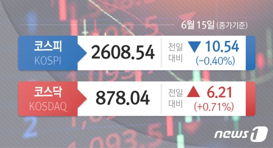 이날 코스피는 전날 대비 10.54p(0.40%) 하락한 2608.54에 거래를 마쳤다. 개인은 2348억원 순매수했다. 외국인은 647억원, 기관은 1873억원 각각 순매도했다.