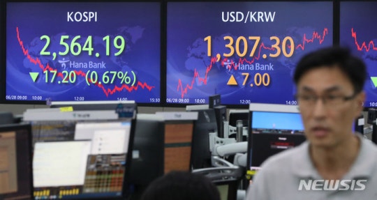 28일 코스피는 전 거래일 대비 17.20포인트(0.67%) 내린 2564.19에 거래를 마쳤다. 이날 지수는 뉴욕 증시 상승에 힘입어 강세로 출발했으나 장 초반부터 하락 전환했다.