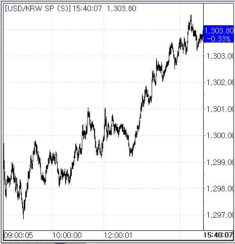 장중 환율 1296.8원으로도 밀리기도