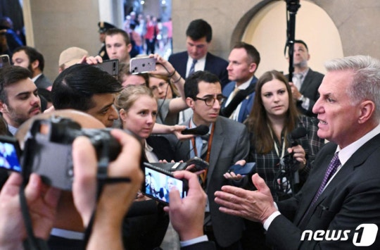 (워싱턴 AFP=뉴스1) 우동명 기자 = 공화당 소속의 케빈 매카시 미국 하원의장이 22일(현지시간) 워싱턴 의사당에서 조 바이든 대통령과 부채 한도 상향의 담판 협상을 나서면서 취재진을 만나 "부채 협상 시한을 맞추려면 이번주에 결정을 내려야 한다"고 밝히고 있다. 2023.5.23 ⓒ AFP=뉴스1 Copyright (C) 뉴스1. All rights reserved. 무단 전재 및 재배포 금지.