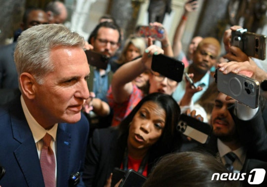 (워싱턴 AFP=뉴스1) 우동명 기자 = 케빈 매카시 미국 하원의장이 30일 (현지시간) 부채한도 협상이 타결된 뒤 워싱턴 의사당에서 취재진을 만나고 있다. 2023.5.31 ⓒ AFP=뉴스1 Copyright (C) 뉴스1. All rights reserved. 무단 전재 및 재배포 금지.